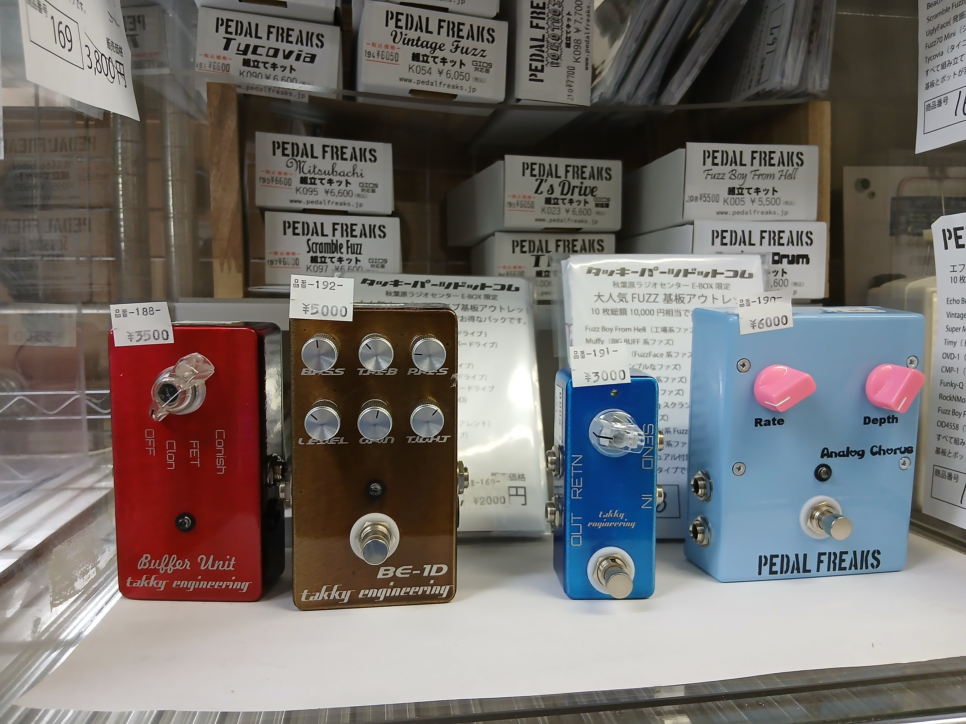 PEDAL FREAKS秋葉原は秋葉原駅電気街口から徒歩3分にあるラジオセンター2階e-BOX内にあります。欲しいキットが見つかったら店員さんに声を掛けて出してもらってください。